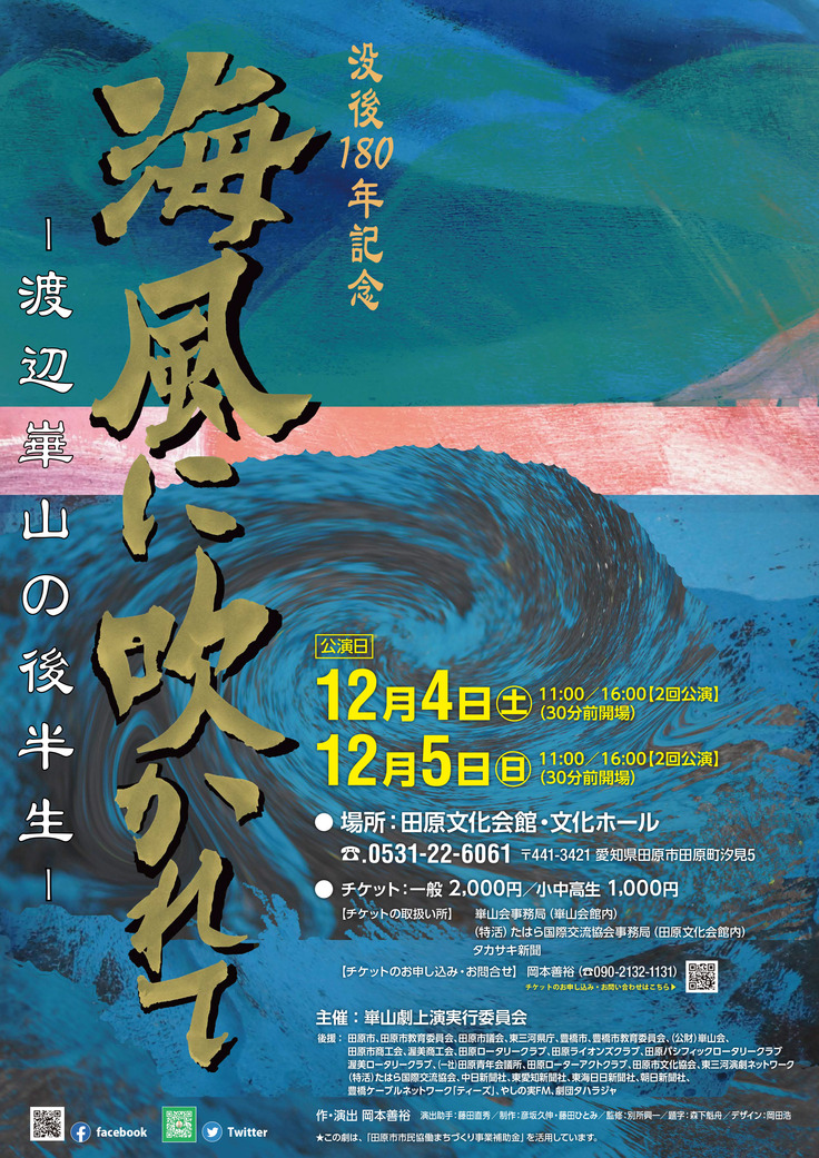 郷土愛知県田原市の先覚者・渡辺崋山の没後180年にあたる令和3(2021)年12月に、その記念行事として市民による「崋山劇」を上演する。