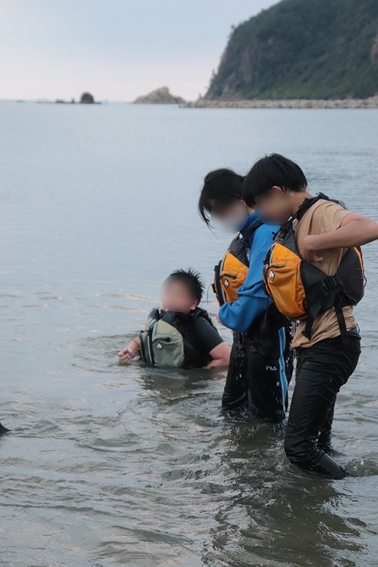 ◯来る前は「泳ぎたくない」と言っていた子が、キャンプ開始1時間後には、服のまま海の中ではしゃぎ回っていました。