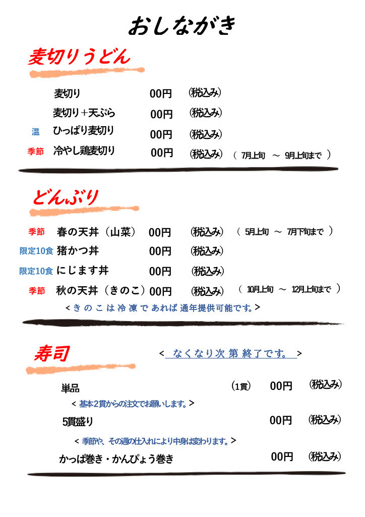 また近隣のお年寄りには別に定食やお弁当を考えています。