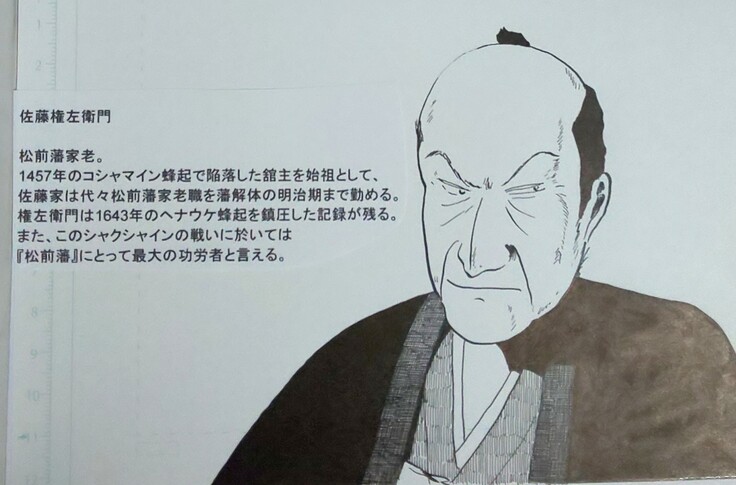 シャクシャイン蜂起の関係資料である「蝦夷筆談記」は佐藤権左衛門配下の通詞で、当時19歳の勘右衛門が40年後に語った内容を更に20年後に発表したもので、佐藤権左衛門の75歳とは思えない大活躍ぶりがかなり盛った形で記されています。しかし、国縫の合戦からシャクシャイン謀殺、シベチャリ城陥落までを当事者ならではのリアルな感じで語っていて松前藩の公式記録とかなりの差異が見られるのも興味深いです。