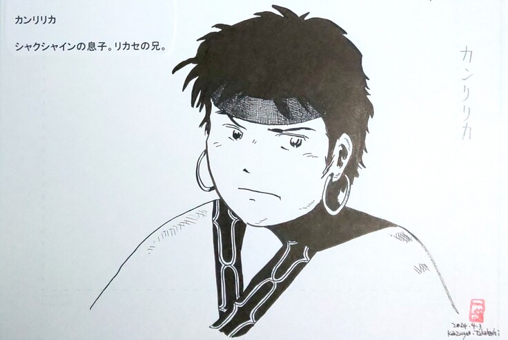 シャクシャインの息子。後年、紛争と蜂起、和睦のキーマンとなりますが、絵はは15才頃、庄太夫と初めて出会った頃です。第2巻以降は彼との友情も軸になります。