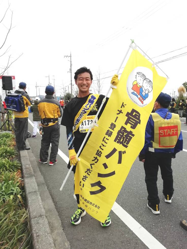 アスリートである私は、骨髄バンクランナーとして黄色💛タスキを装着して全国各地のマラソン大会に出場をして、みんなに骨髄バンクについて知って頂く機会に繋げています。大阪マラソン2023ではチャリティーランナーとして出走。自分自身が全力で走ることにより、献血・骨髄バンクを伝え広められるよう身を尽くして行動をしています。