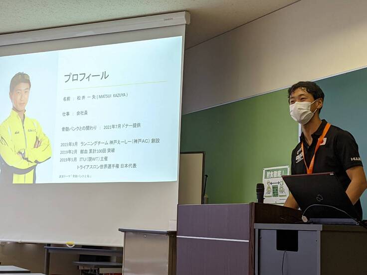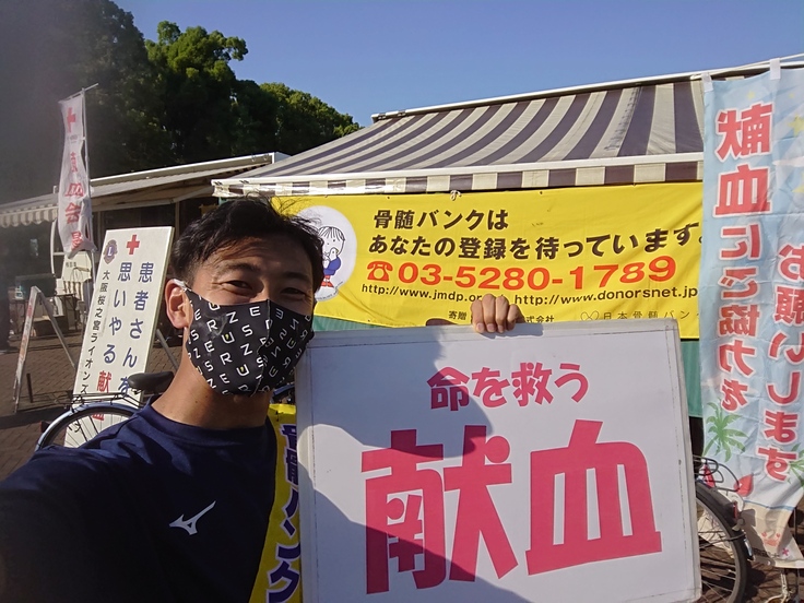 トライアスロンという激しいスポーツに挑戦できているのは、この健康な肉体があってこそだと思うし、この健康を社会に還元したい!!という想いを持って、可能な限り献血を続けながら、同時に骨髄バンク説明員の資格も取得し、2022年5月からは骨髄バンクユースアンバサダー(骨髄バンクYA)に就任し、献血・骨髄バンクを伝え広めるボランティア活動をしています。