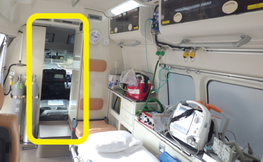 患者さんを事故なく安全に搬送するために、直接目視できないところも確認できるモニターを導入します。