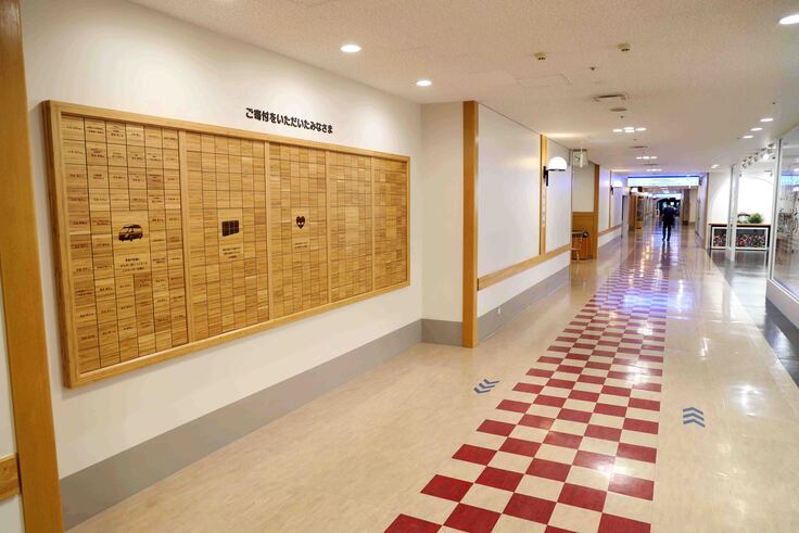 設置場所は当院の歴史を紹介するコーナー「IDEA」の向かい側で、現在はドクターカーのCFで対象の方を掲示しており、今後は赤い屋根まごころ基金でのご寄付も反映する予定としております。