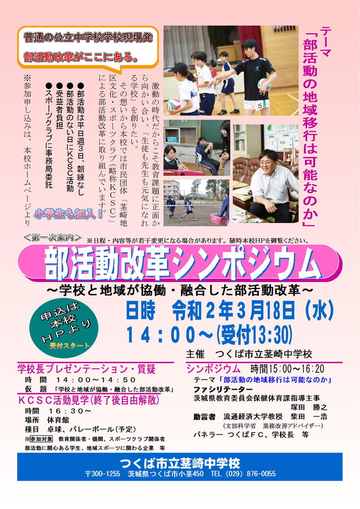 なお、茎崎地区文化・スポーツクラブの実践を踏まえたシンポジウムを下記のとおり開催予定です。