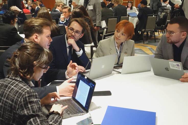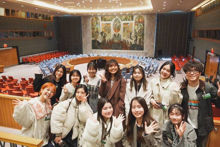 本学では、国際舞台でも通用する英語力やリサーチ、分析、公文書作成、交渉、プレゼン能力など高度グローバル人材に必要な能力を磨くため、模擬国連の授業を開講し、毎年模擬国連世界大会へ学生を派遣するなど、模擬国連の活動に注力しています。