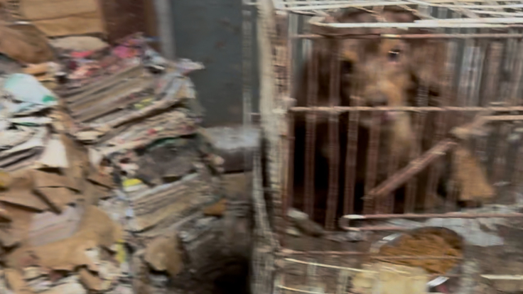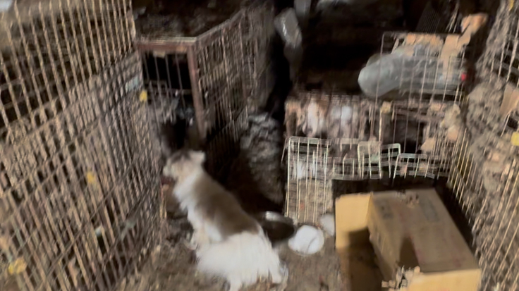 小型犬のバリケンに身動きが取れない状態で二頭ずつ詰め込まれていた様々な子達を見ながら