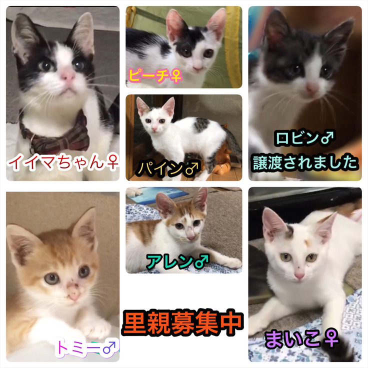 ●子猫のロビン 町はずれの路上で保護された子猫。健康状態は良好。ノミダニ駆除、寄生虫駆除。その後下痢のため受診。幸運にも里親様にご縁があり、とても幸せにしているようです。