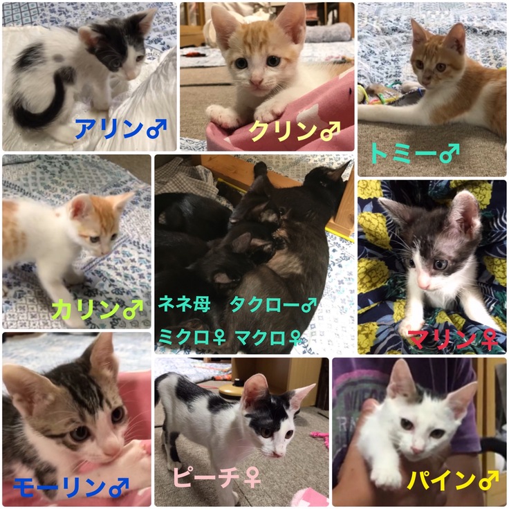 すずママと子猫5匹(アリン・クリン・カリン・マリン・モーリン)