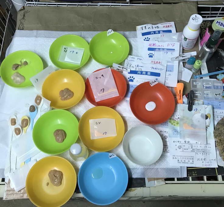 ネネ一家とすず一家は、検便で寄生虫のコクシジウムが出て全員2回ずつ駆除薬飲ませました。