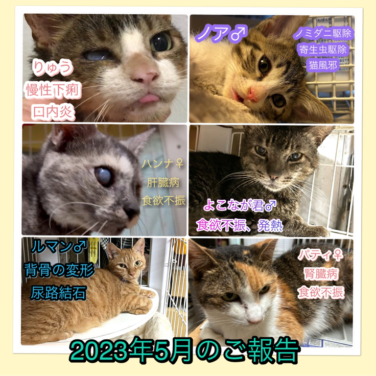 皆様のおかげで、5月もたくさんの猫たちに治療を受けさせて頂きました。心から感謝申し上げます。今回もご報告がとても遅くなってしまい、申し訳ありません。