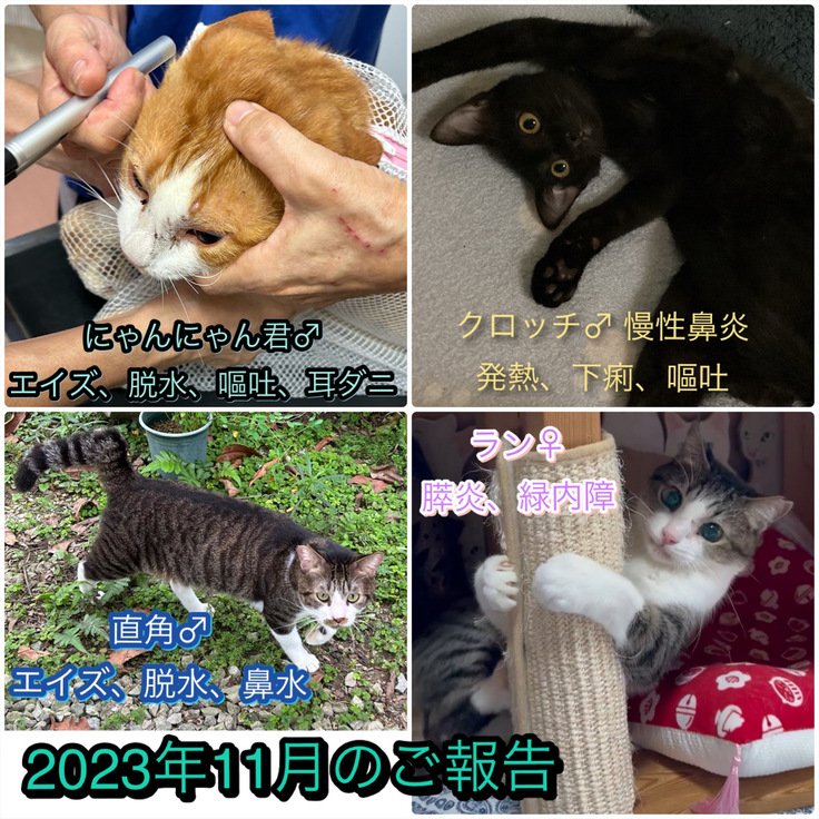 皆様のご支援のおかげで、11月もたくさんの猫たちに治療を受けさせて頂き、