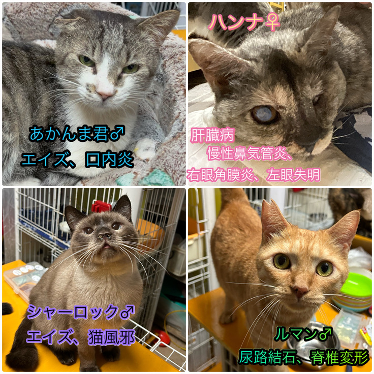 ●マイス エイズキャリアで慢性の鼻気管炎、口内炎、口蓋裂があり、食べたものが鼻から吹き出してしまいます。くしゃみ鼻水は、抗生剤で少し調子は良くなっています。