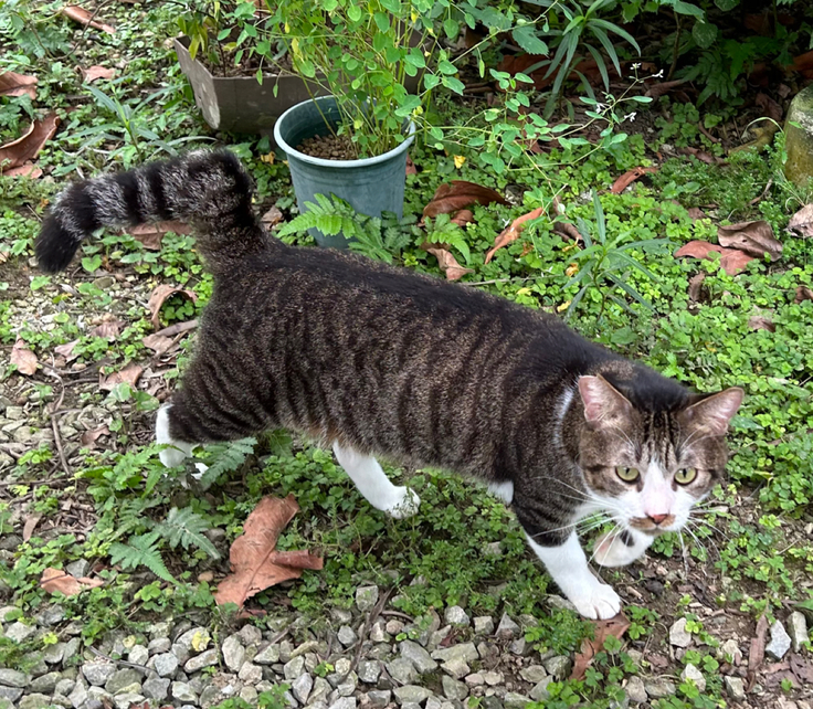突然迷い込んできた、コワモテのビビリ猫さんです。