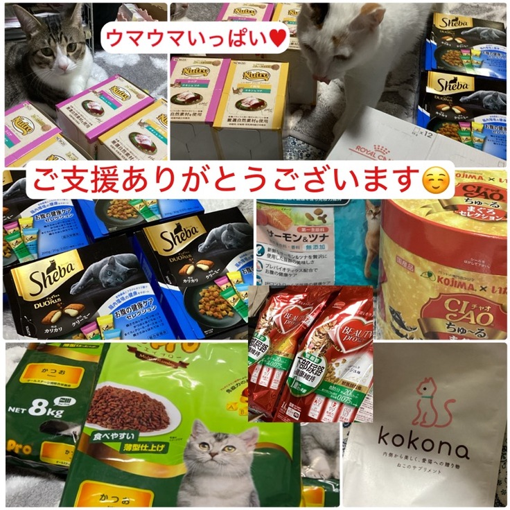 キャットフードなど送ってくださった皆様、また、匿名でお送りくださった皆様、ありがとうございました。