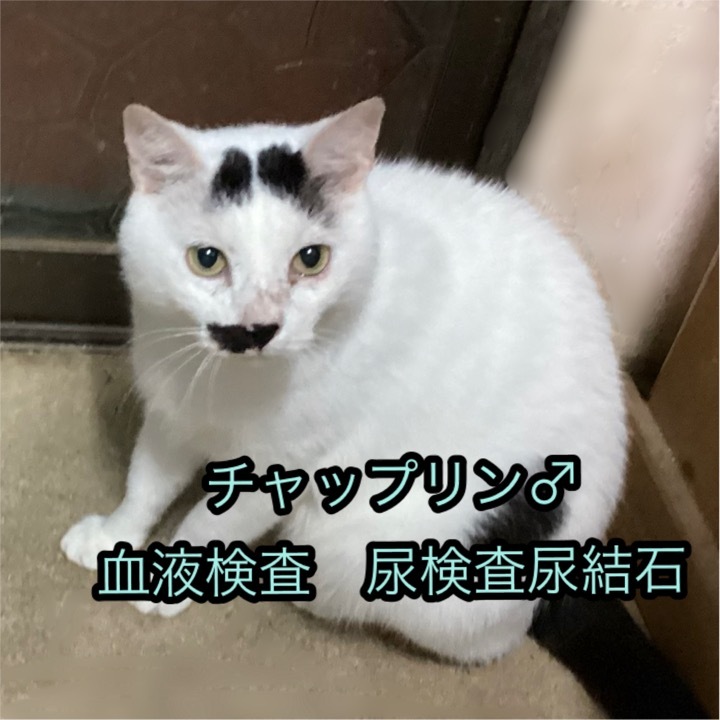 ⚫️チャップリン、ひどい急性腎不全で倒れていたのを保護した猫なので、腎臓の状態を見てもらうため血液検査を受けました。幸い良い状態とのことで安心しました。