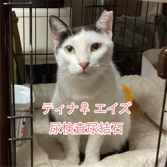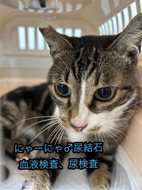 ⚫️にゃーにゃ 虐待を受けた猫で、今でも後遺症で平衡感覚がなく、歩き方もぎこちないですが、いつも元気で食欲旺盛でした。それが急に食欲不振になり受診。血液検査では特に異常はなく、やや脱水状態でした。ウィルス検査も幸い陰性。その後食欲は回復。尿検査では結石が出て、フードは両方色に切り替えることになりました。