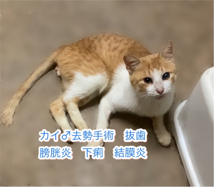 ⚫️カイ 若いのに歯肉炎もひどいので、去勢手術と同時に抜歯をしてもらいました。尿検査では、菌が多く膀胱炎でした。お腹も弱く下痢がち。抗生剤と整腸剤を処方されました。1歳位なのに、体は小さく子猫のようです。術後2週間後に再診。膀胱炎は完治しましたが、抜歯後の状態はまだ良くなく、抗生剤2週間分追加になりました。歯の痛みもなくなり、最近は、とても元気に遊ぶようになりました。