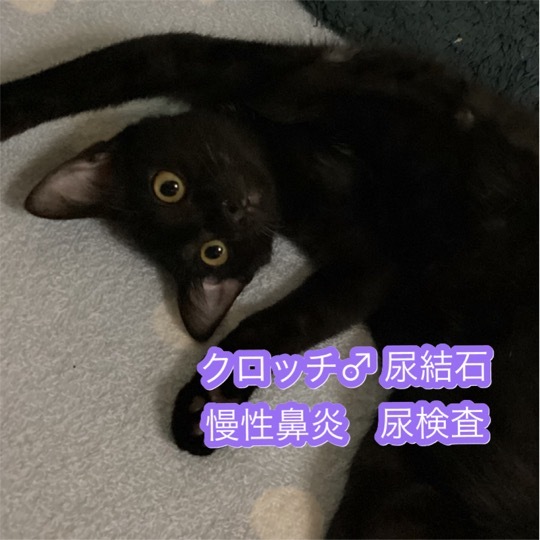 ⚫️クロッチ 抗生剤が効いて、くしゃみ、鼻水、かなり改善しています。尿検査で結石が出て、療法食に切り替え。