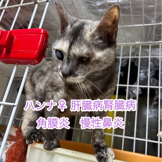 ⚫️ハンナ 腎臓と肝臓が悪く、食欲不振。療法食もちゅーるさえも拒否が続き心配な状態でしたが、お刺身を与えると夢中で食べ、これまでリンゲル補液も暴れてできないことが多かったのですが、食べることに集中している間なら、補液もほぼ気づいてないまま終わり、びっくりでした。