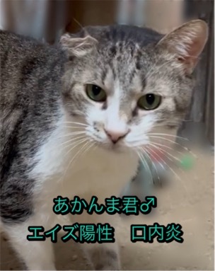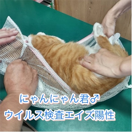 ●にゃんにゃん君♂ウイルス検査3回目。1回目はエイズ陽性白血病陰性。2回目はエイズ陰性で白血病が陽性。エイズが陰転することはないそうで、獣医師も首をひねっていました。3回目は再びエイズ陽性で白血病陰性でした。現在、預かりさん宅で隔離。大事にしてもらって、元気にしています。