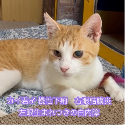 ●カイ君♂ 1歳はとっくに超えているようですが口内炎と慢性下痢が続いて、大きくなれないままの猫さんのようです。抜歯をしてからよくごはんを食べられるようになり、かなり元気になっていますが、いまだに頻繁に下痢になります。消化の良い療法食をふやかし、猫用の乳酸菌と消化酵素を与えています。