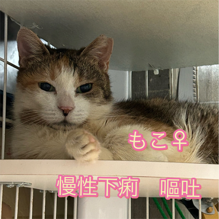 ●もこ 下痢がちなので受診。検便では寄生虫は今回も出ませんでしたが、腸内環境がひどく悪い状態とのことで、消化促進の注射と内服用に消化酵素を出してもらいました。