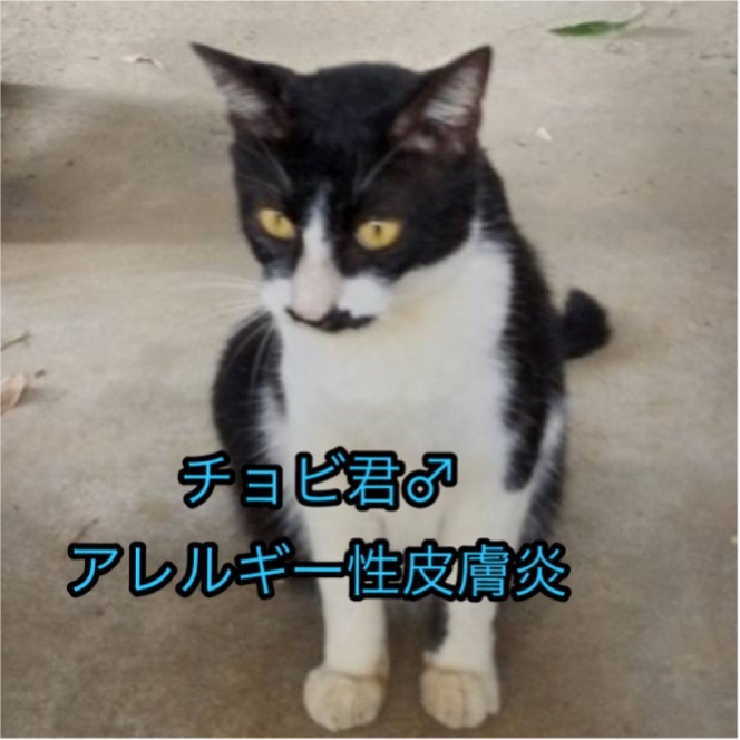 地域猫のチョビ君、脱毛が広がっていたので、動物病院で抗生剤と抗炎症剤の注射をしてもらいました。初めて動物病院に連れてこられて、びっくりしたようでした。