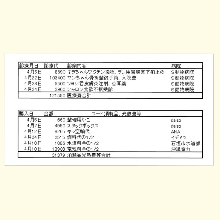 ◉ご支援金は、以下のように使わせていただきました。感謝します。
