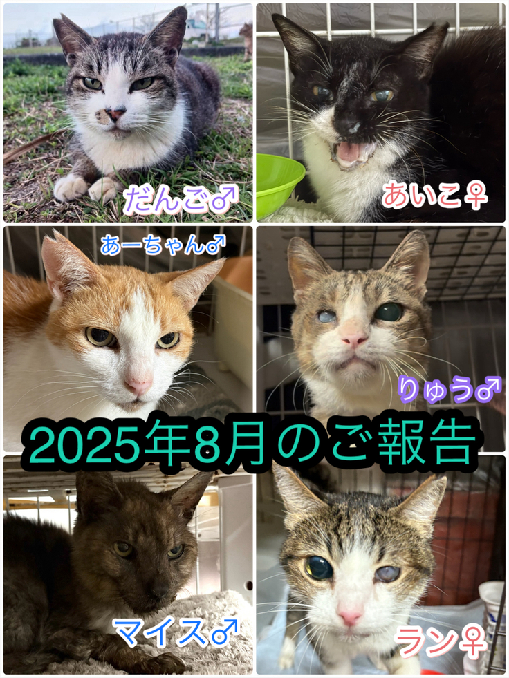 皆様のご支援のおかげで、2025年8月も猫たちに治療を受けさせて頂きました。