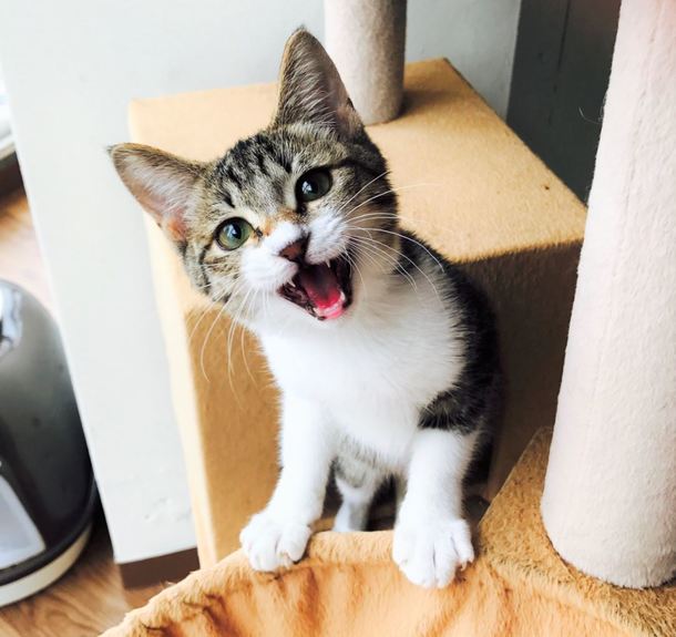 酷い風邪で、保護猫カフェに来たアッシュちゃんも治療によりキレイなお顔と健康を取り戻しました。今は、新しい飼い主の元で幸せに暮らしています。
