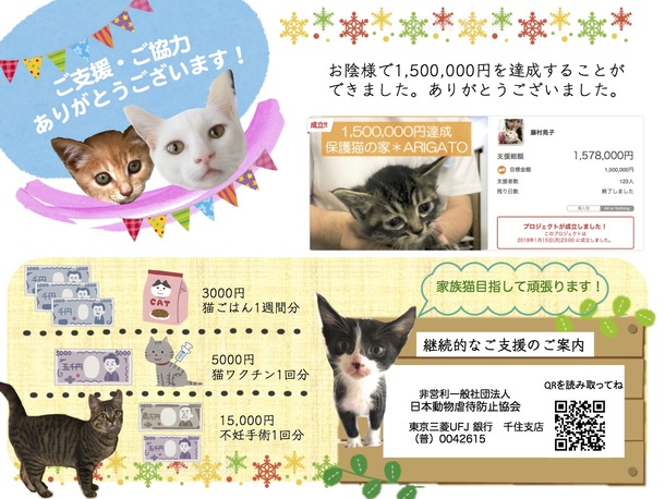 昨日、最終決済となり、皆様からいただいたご支援は、