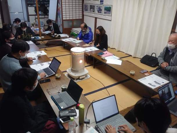 、ワークショップを開催しました。今年一番の寒波襲来となるなか、会場内は参加者の熱い情熱と関心の高さが溢れる会議となりました。行政、マスコミ関係など幅広い分野からZoomによるリモート参加も含めて16名が参加。テーマは、クラウドファンディング成功後に各戸に導入予定のスマートスピーカーの活用例の紹介と実際に体験をいただきました。