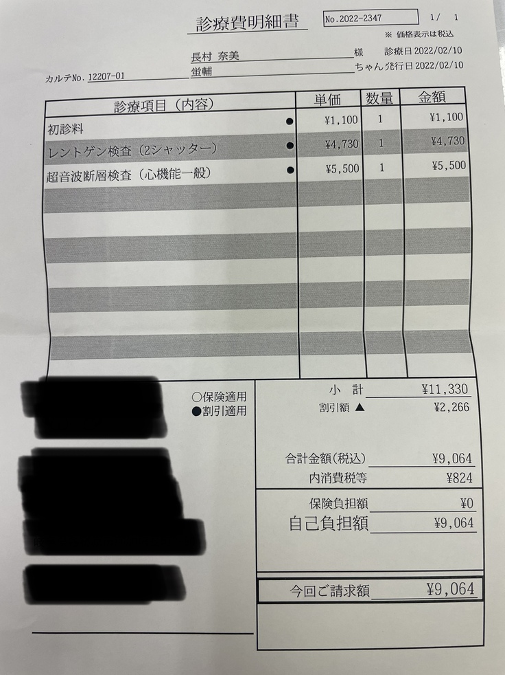 最初の病院では、エコー検査とレントゲンで調べて貰いましたが、検査結果は見せて貰えず口答のみの診断と説明でした。