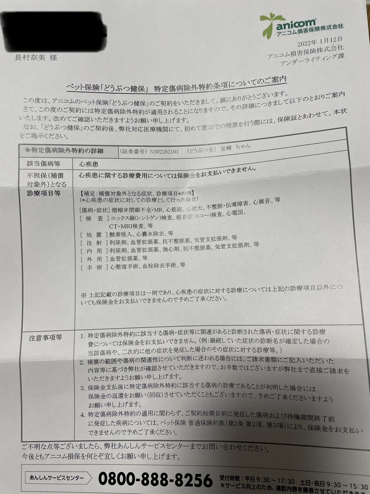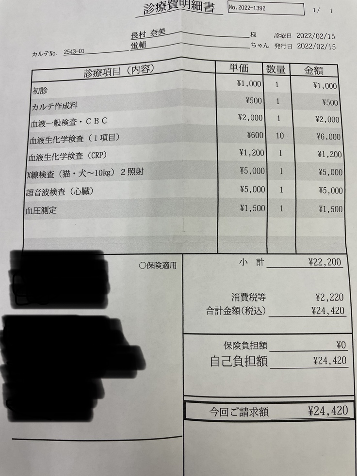 蛍輔はペット保険に加入していますが、産まれつきの心雑音の為、心臓にまつわる全ての検査、治療、薬、通院は保険適用外になっております。