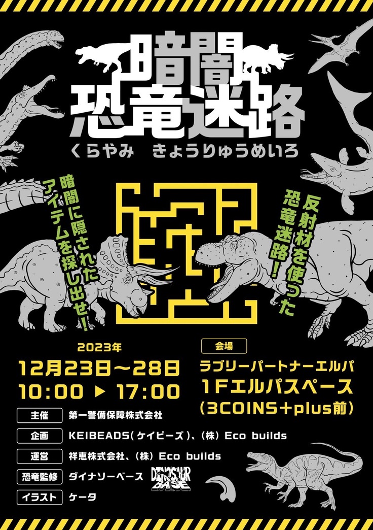 暗闇恐竜反射迷路の初陣は、福井県最大のショッピングモール「ラブリーパートナー エルパ」で開催予定。