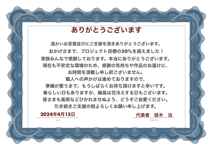 いつも温かいご支援をいただきありがとうございます。