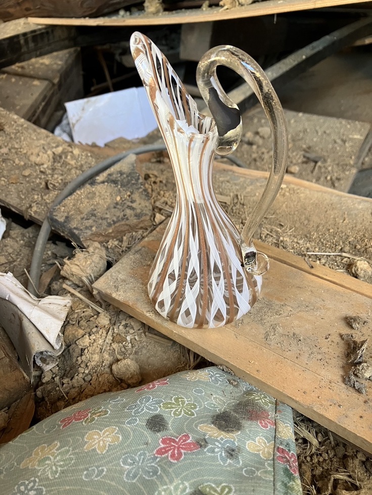 なんと修理でお預かりしていたベネチアングラスの一輪挿しが、全壊した建物から発見できました!