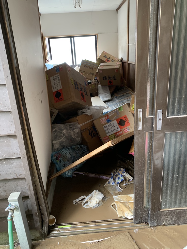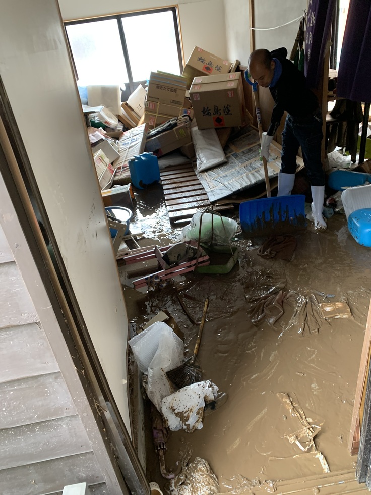 店の棚や出店用の商品を詰めたダンボール、一階の畳など、いろいろなものが泥水に浸かり浮いてしまいました。