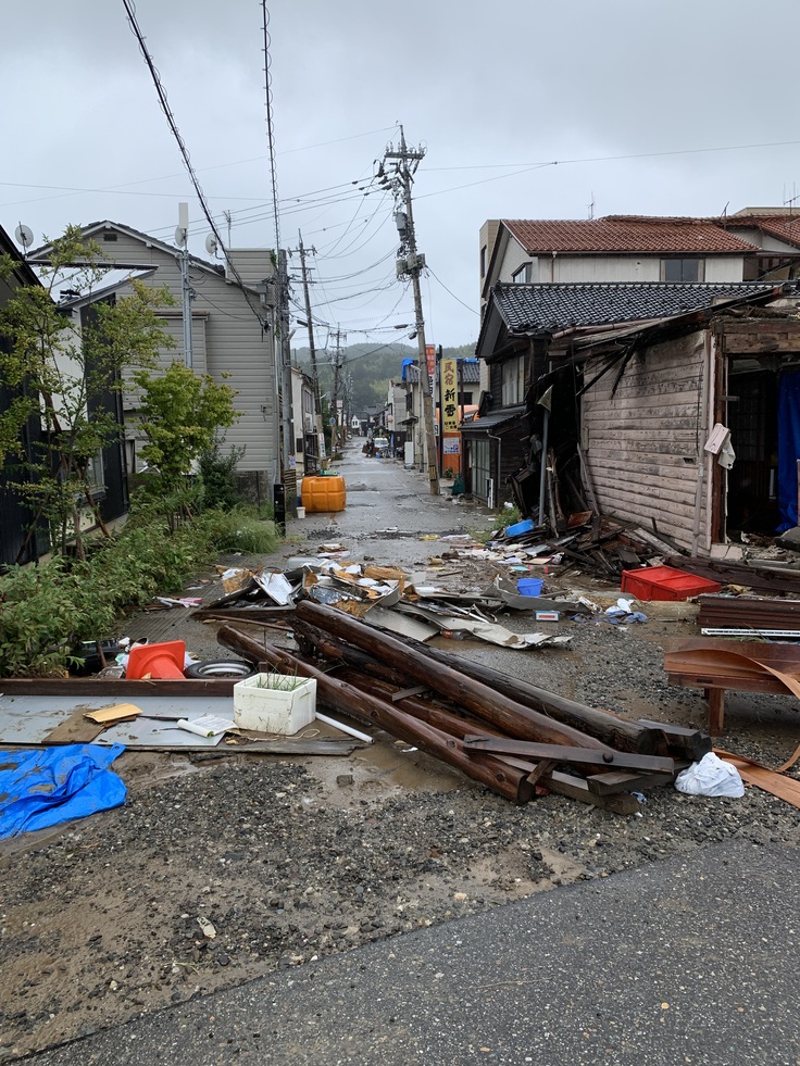 テレビニュースで報道されている通り、能登北部を襲った豪雨により、多くの川が氾濫し、輪島市内の至るところで洪水が発生しました。