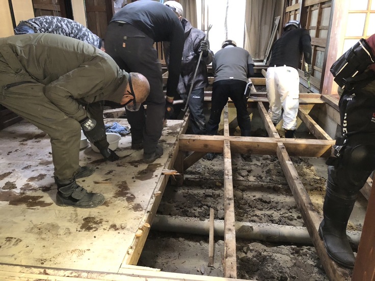 豪雨1週間後くらいから、多くのボランティアの方々が助けにきてくれました。そして、一緒に泥にまみれながら作業をしてくださいました。