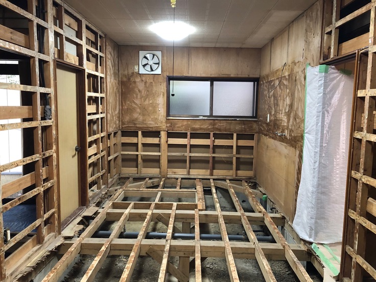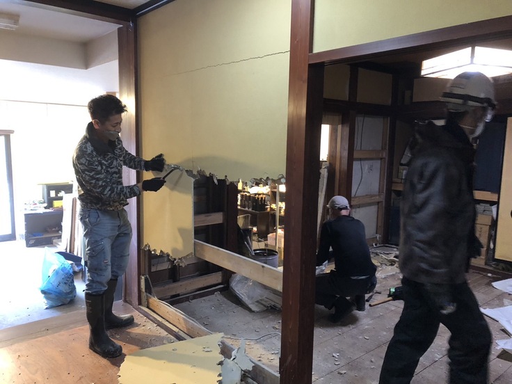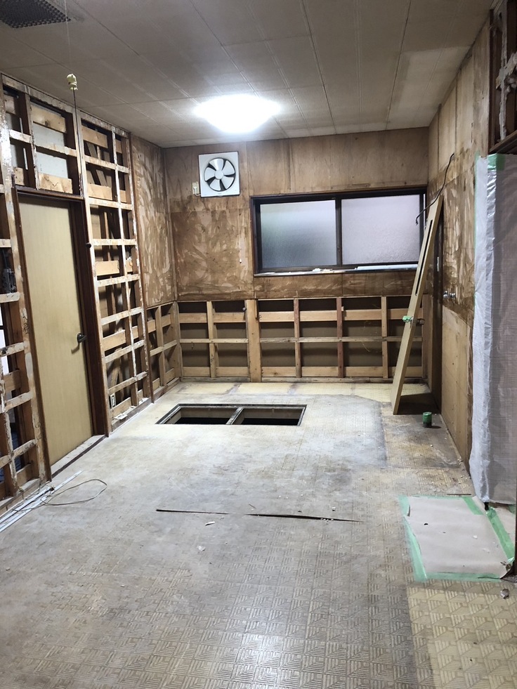 この後も 台所・倉庫・お風呂場・脱衣所の壁と床剥がしを続け、その後 ヘドロ出し。