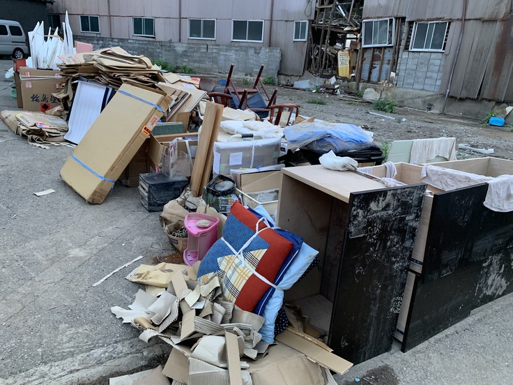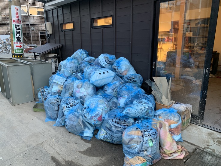 地震で助かった輪島塗の一部商品、1階部分や電化製品(エアコン、冷蔵庫、テレビなど)はダメになり、廃棄となりました。