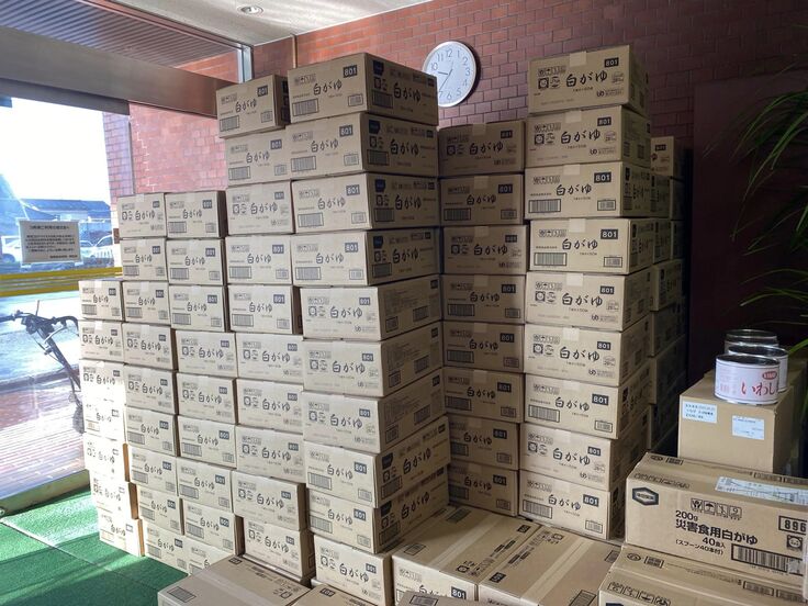 おかげさまで、全国より食糧が届きます。ありがとうございます。また、いただいた食糧、水、おむつなどを七尾以北の介護施設に送り出しです。