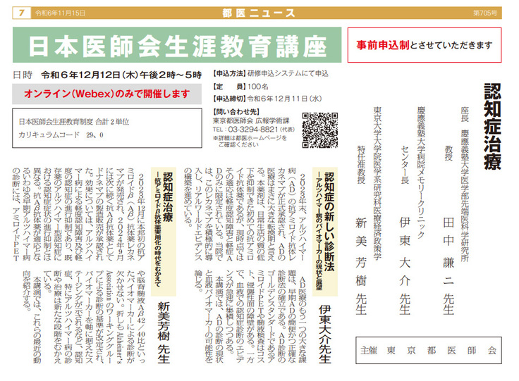 東京都医師会の情報誌、都医ニュース に、12月の講演内容が掲載されました。