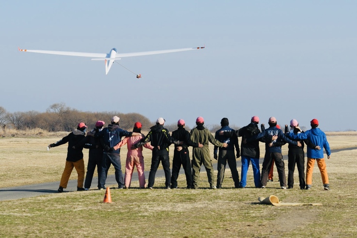 他の体育会の部活と同様に、グライダーにも早慶戦があります!フライトだけでなく、フライト時の塾注からの『若き血』の熱唱、早稲田は応援歌『紺碧の空』を歌い、早慶戦特有の華やかな雰囲気が特徴です。空の早慶戦は最も伝統がある大学対抗戦であり、慶應航空部としても、他の競技会とは比べ物にならないほどの重みがあります!昨年で51回目を迎え、見事慶應が個人・団体ともに優勝を果たすことができました!選手は4年間の集大成として、スカイスポーツの尽きせぬ魅力と奥深さ、クルーも応援歌を歌いながら仲間を応援し、緊張感と高揚感をもって、チーム一体となって競技に取り組めます。今年は2月中旬に開催予定です!