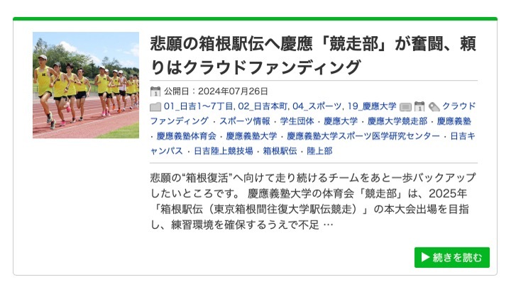 記事では、慶應義塾大学と箱根駅伝の歴史や昨年の予選会以降のチーム状況、クラウドファンディングの経緯や詳細などについても掲載していただきました。