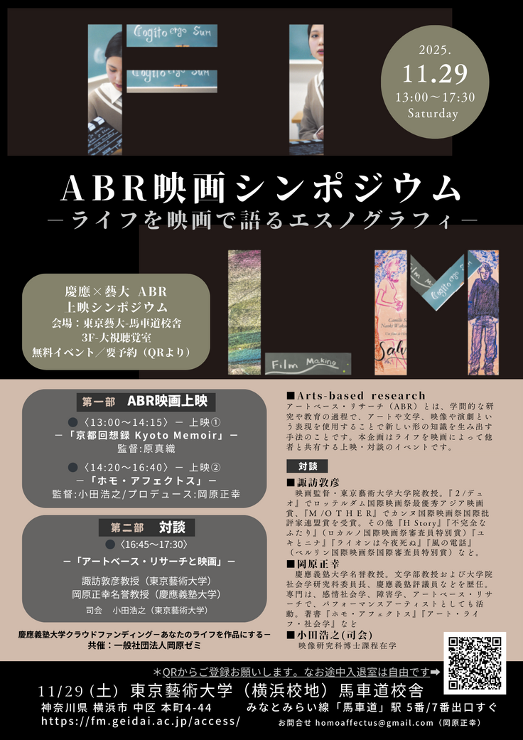 および、ABRと映画に関する対談を、東京藝術大学映像研究会の馬車道キャンパス内で実施します。