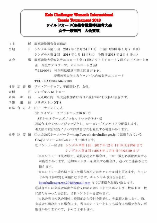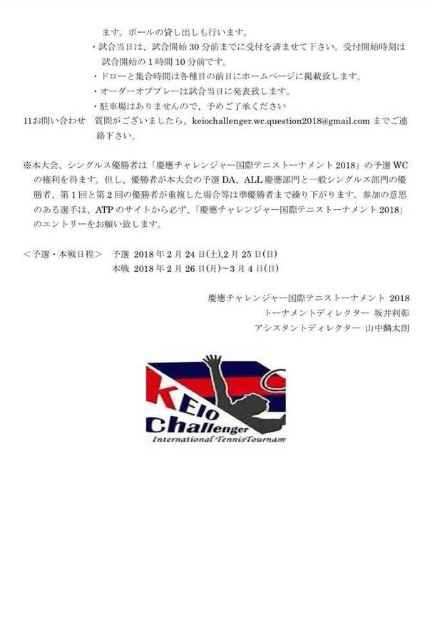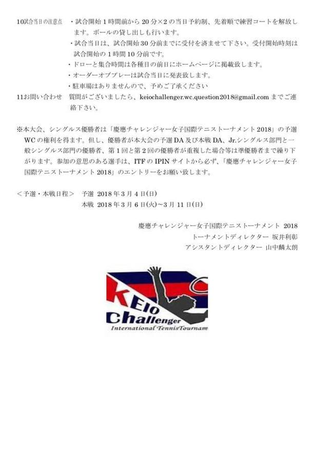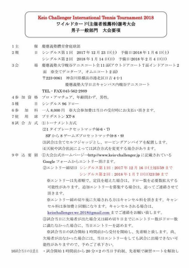 また、慶應チャレンジャー国際テニストーナメントの一般の方に向けてWC大会を行います!WC大会は国際大会に参加できる貴重なチャンスです!